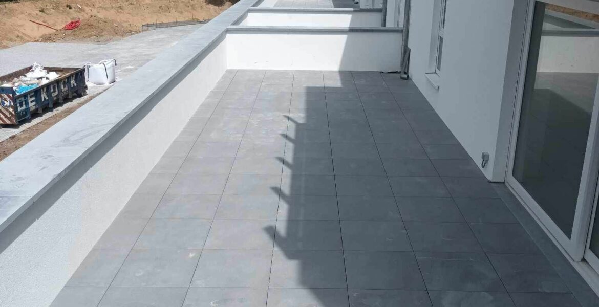 Réalisation d’une terrasse extérieure en béton dans le cadre d’une nouvelle habitation.