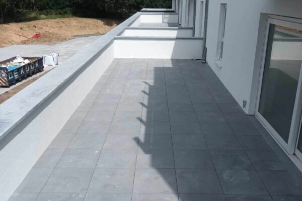 Travaux combinés d’étanchéité et aménagement d’une terrasse moderne et élégante.